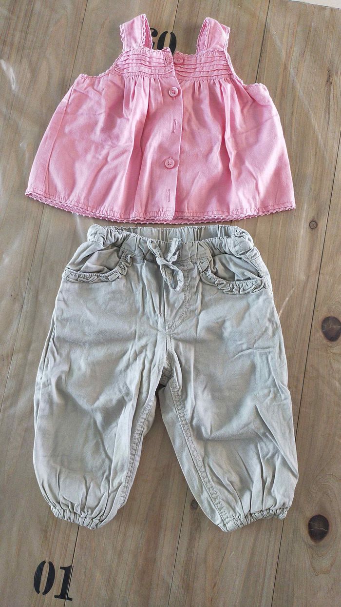 Pantalon Marque: h&m Taille: 6/9 mois 74 cm Haut Marque: la redoute création Taille: 6 mois 67 cm