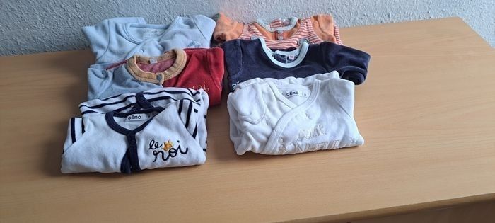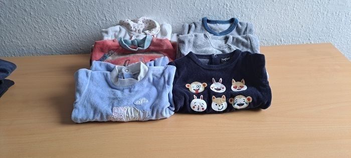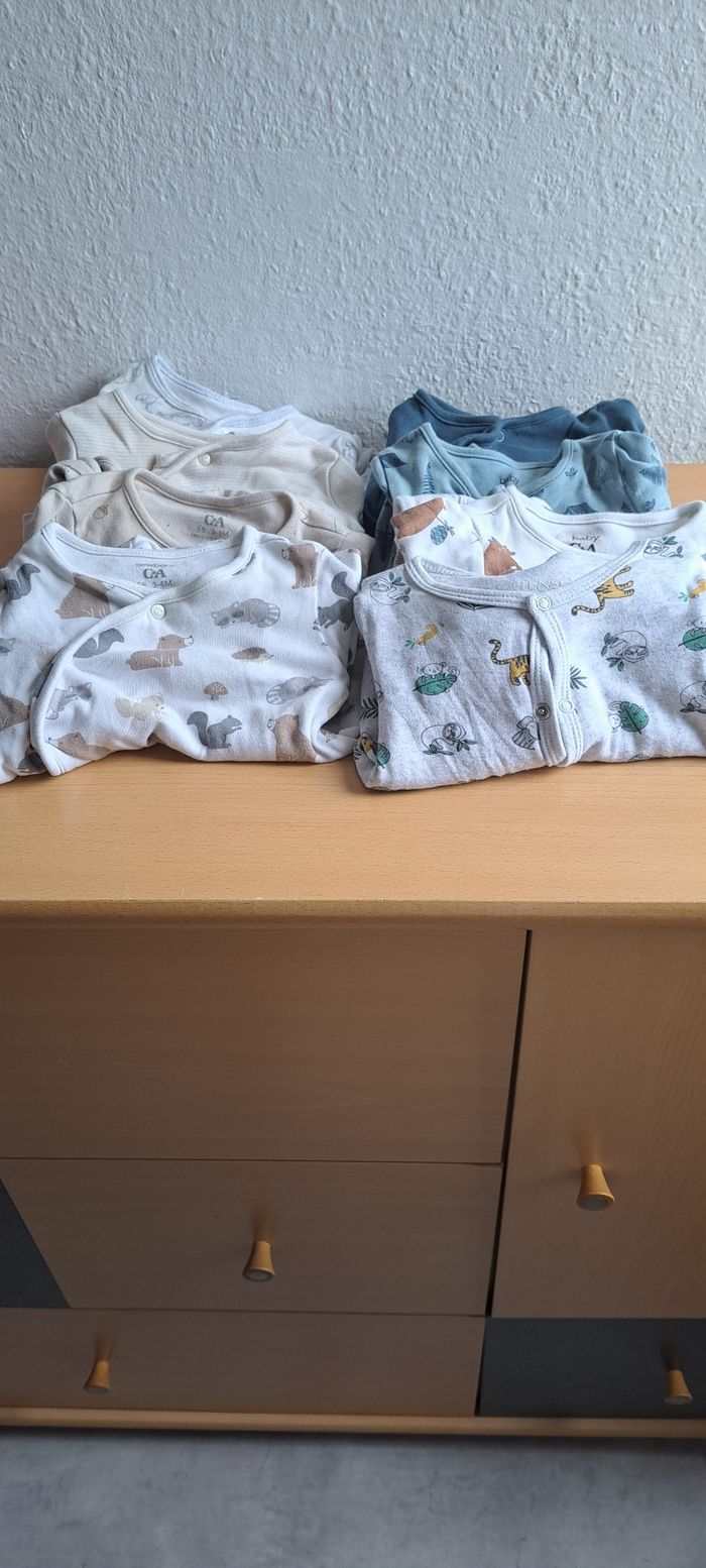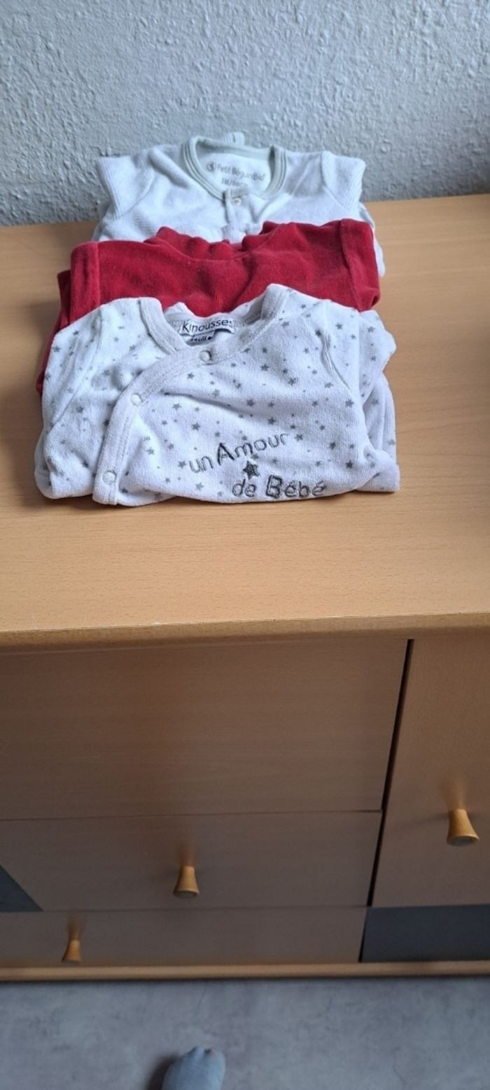 Bonjour, Je vends ce lots de pyjama Il est composé de : -6 pyjama 0-3mois -3 pyjama 1 mois -22 pyjama 3 mois entier -2 pyjama 3 mois deux pièce Ils sont en très bon état certains n'ont casiment jamais été porté