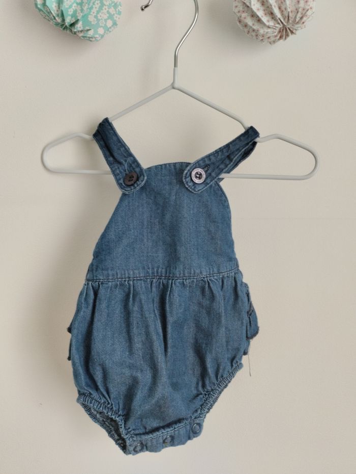 Barboteuse en jean, taille 0 mois. Marque Republic of kids. Très bon état.