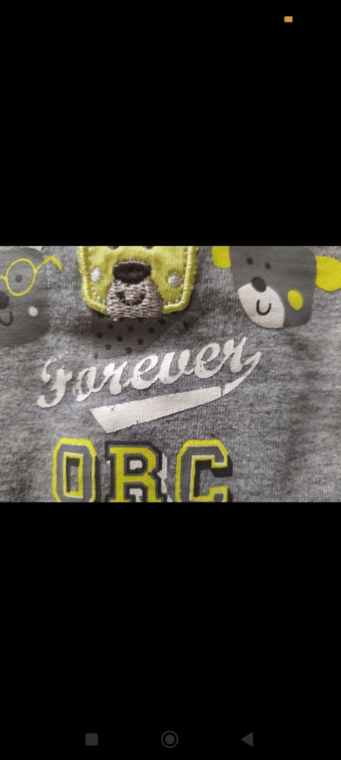 Pyjama en Jersey ouverture dos Taille 6 mois Porté régulièrement, écriture un peu effacée devant (photo 3) et tissu un peu abîmé derrière près de l'épaule (photo 4)