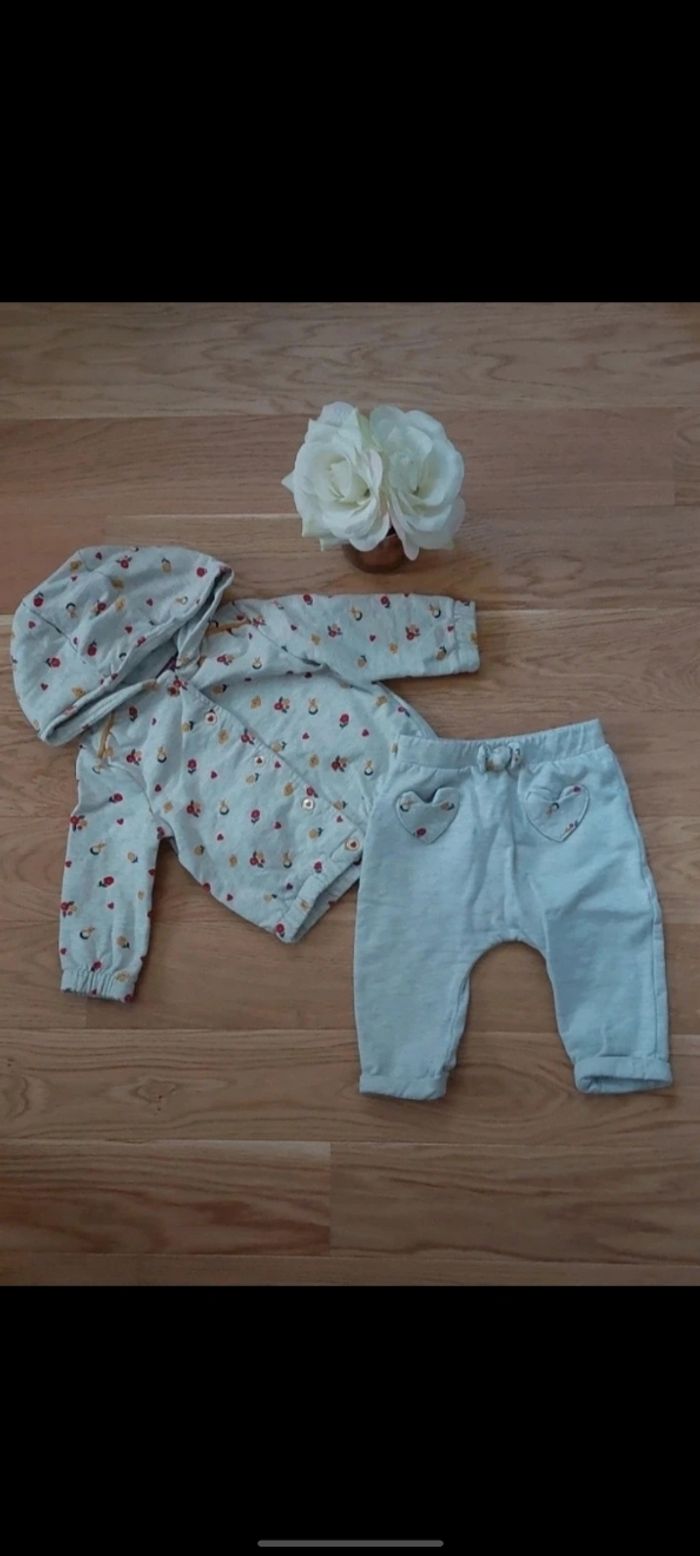 Ensemble 9 mois marque sergent major casi neuf Couleur gris beige avec petite poche en cœur