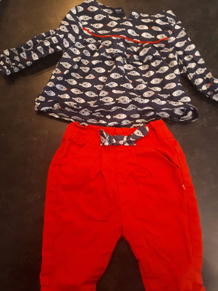 Pantalon rouge Haut bleu foncé avec poisson Très bon état