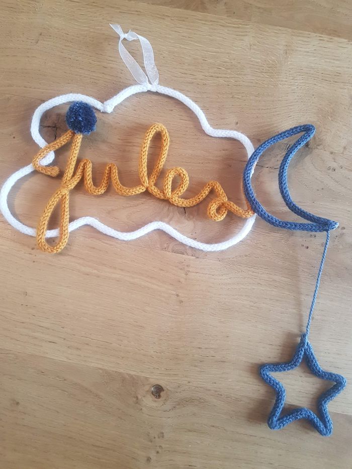 Fabrication de prénom en tricotin de 15 a 20 euros selon le modèle souhaiter