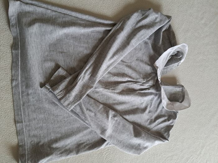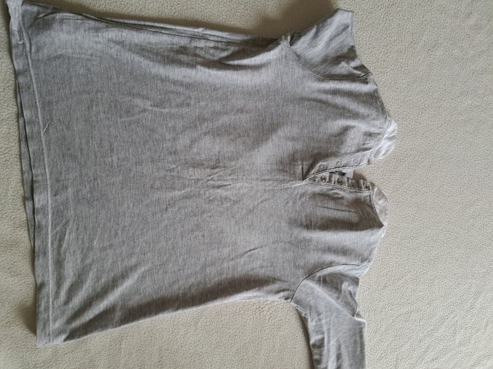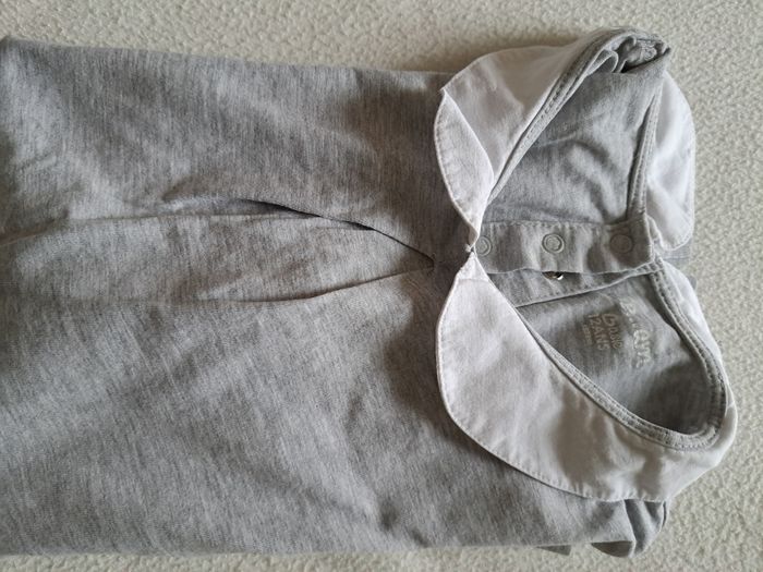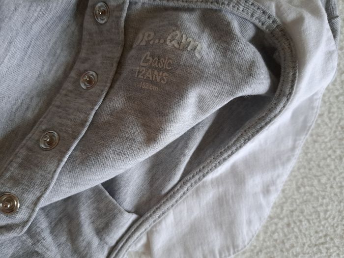 Tunique grise avec un col Claudine blanc. Manche longue. Taille 12 ans. Marque du pareil au même.