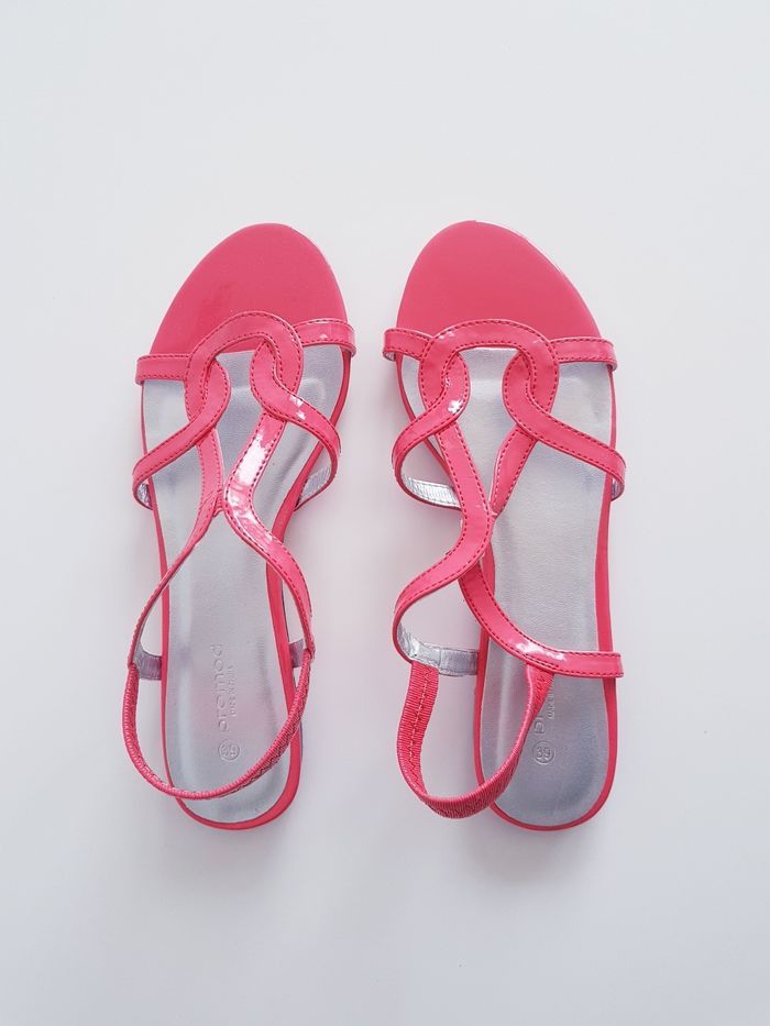 🚨 Prix fixe Sandales plats Marque : PROMOD Couleur : rose saumon laqué (brillant) Pointure : 39 État : neuf avec étiquette Vendues avec la boîte à chaussures d'origine Retrait sur place ou envoi.