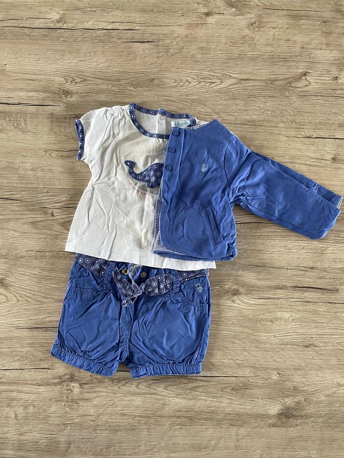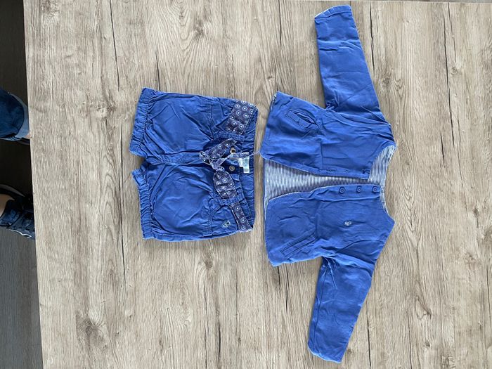 Le short et le gilet sont en excellent état. Je donne le t shirt qui présente des tâches de lait.
