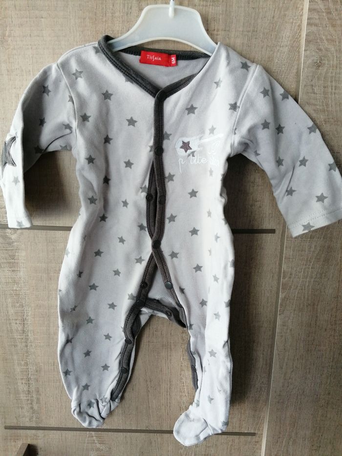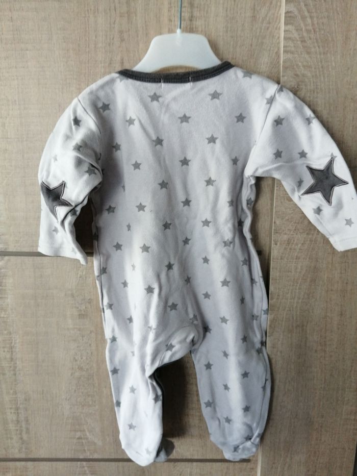 Pyjama avec pied. Tissu fin et léger. Ouverture : boutons pression sur le devant. Idéal pour les nuits un peu plus fraîches cet été. Bon état