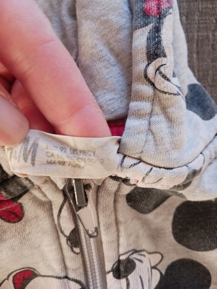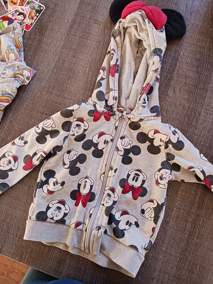 Vend veste Mickey minie taille 24mois Avec les oreilles et le noeuf sur la capuche en très bon état