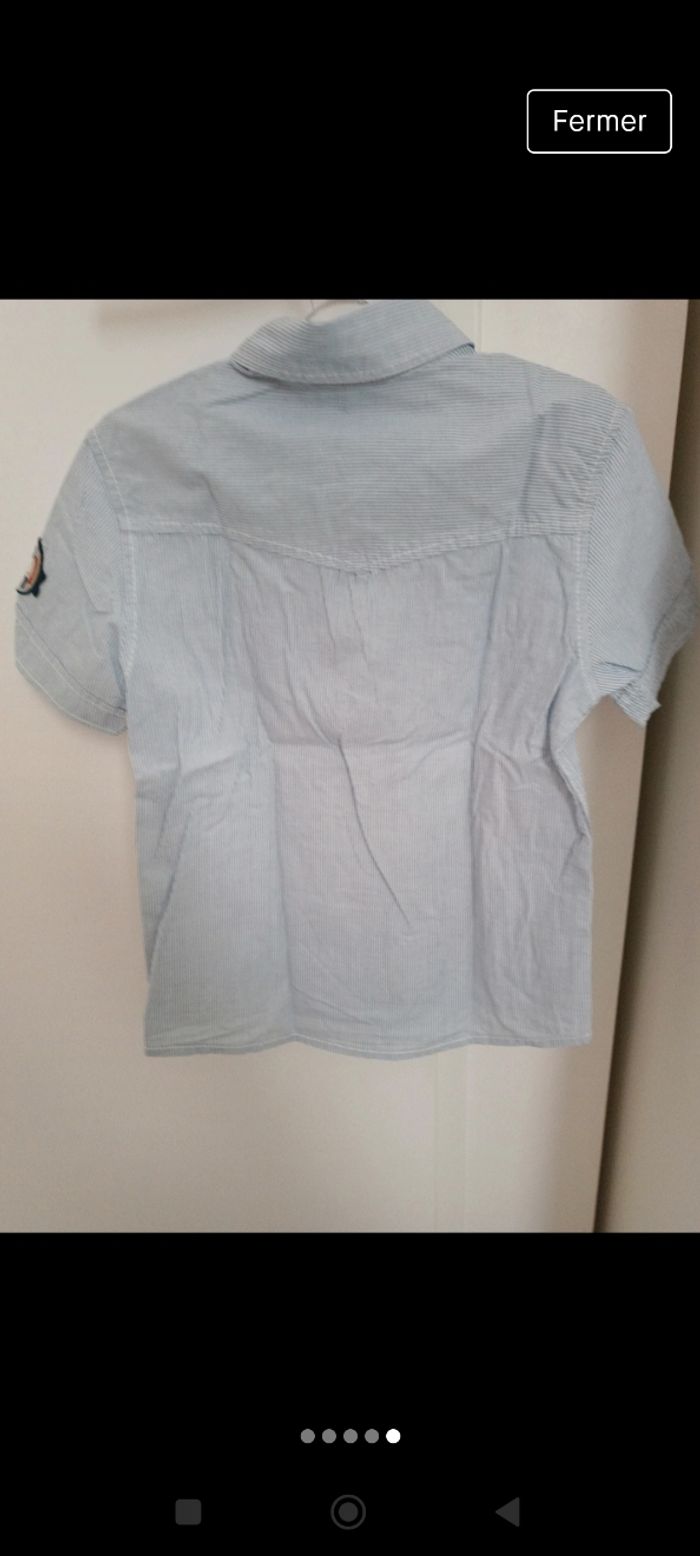 Chemise à manches courtes blanche et bleue rayée, 2 poches poitrine 4-5ans 110cm #mariol69110garcon5ans