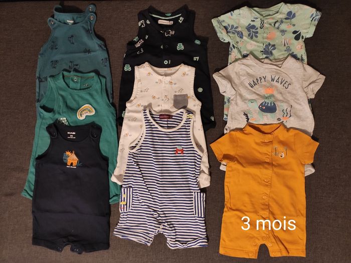 Lot barboteuses été sans manche ou manches courtes diverses marques : Kiabi, Insextenso, Gémo, Sergent Major, Lulu castagnette, Obaibi.