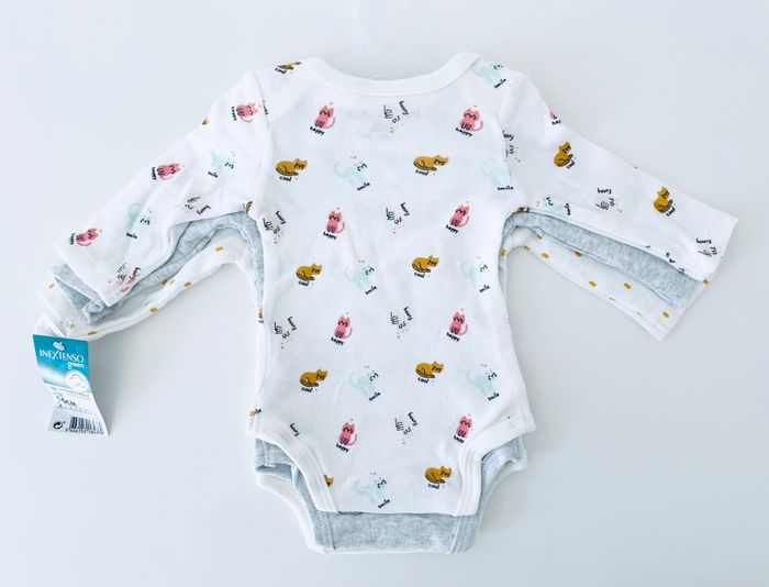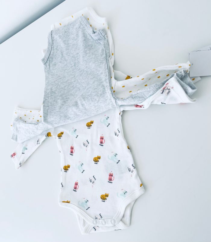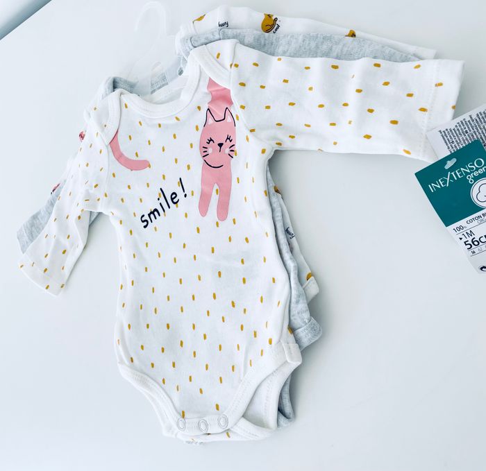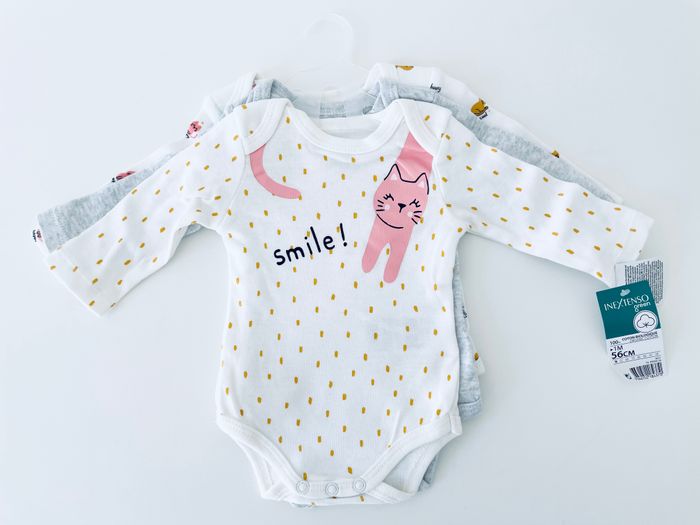 Magnifique lot de 3 bodies motif chat, taille 1 mois (56 cm), marque inextenso. Article neuf avec étiquette.