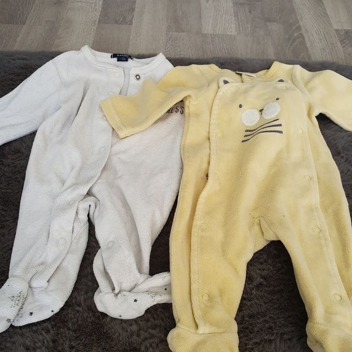 Vends lot de pyjamas 1 mois.La plupart des pyjamas s'ouvrent entièrement devant. Tres pratique. Il y a environ 25 pyjamas. Plusieurs marques ( Gemo, kiabi ...)