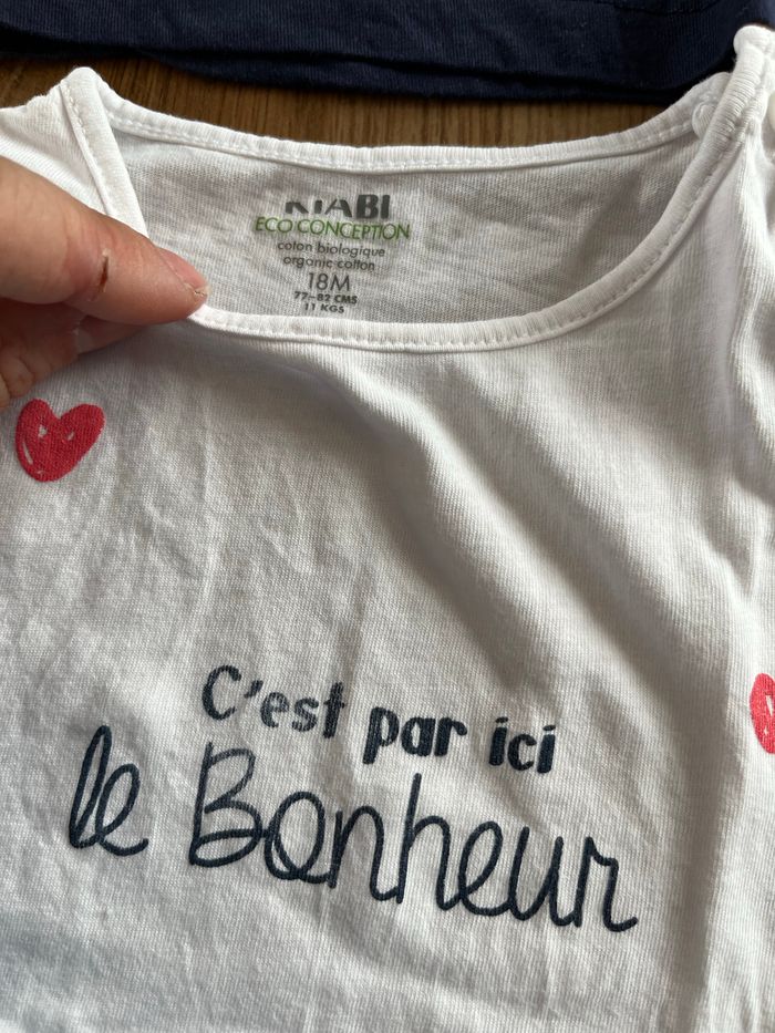 Lot de 2 T-shirts manches courtes pour bébé fille en excellent état Marque Kiabi et l’autre vient du Super U Taille 18 mois