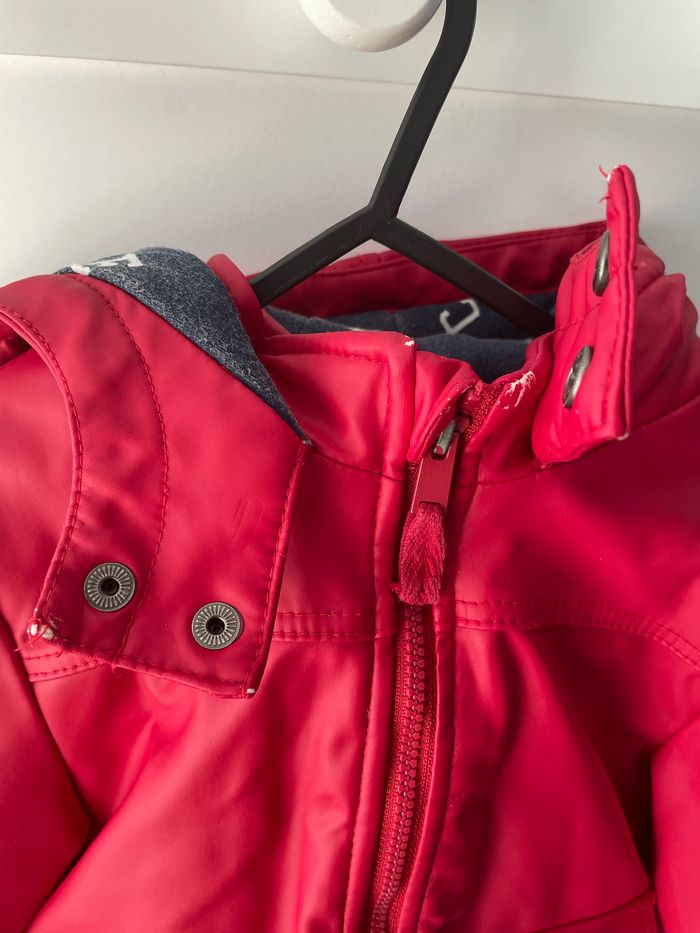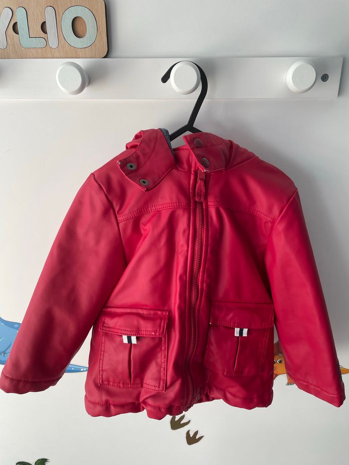 Manteau rouge mi-saison Orchestra, très peu porté. Usure visuelle sur le haut du manteau mais rien d’autre à signaler.