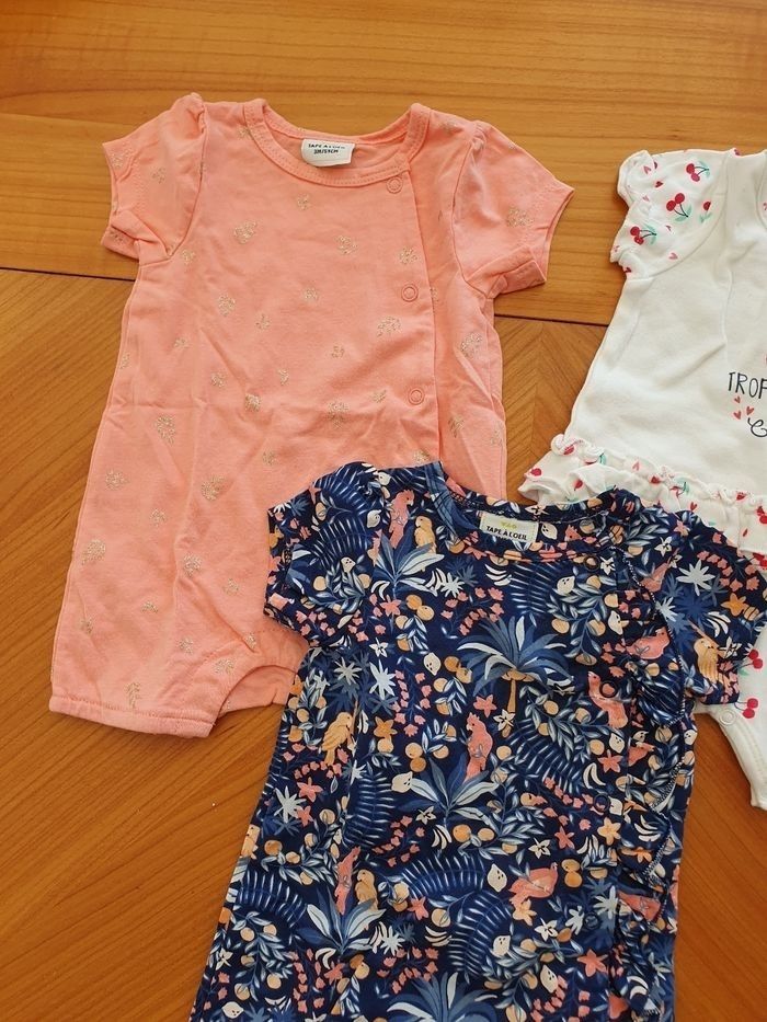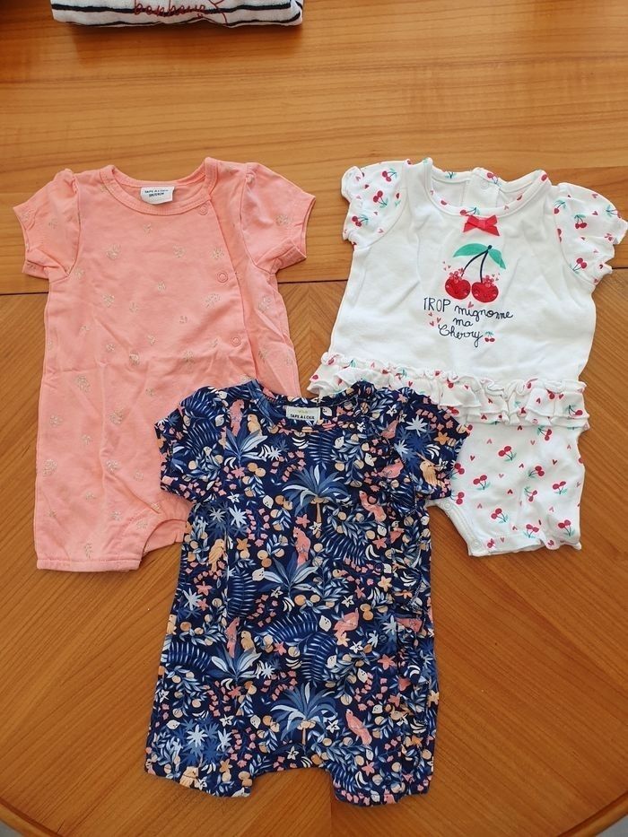 Lot 7: taille 3 mois 2 combinaisons marque Tape à l'œil 1 combinaison marque Pat et Ripaton État neuf/ très bon état.