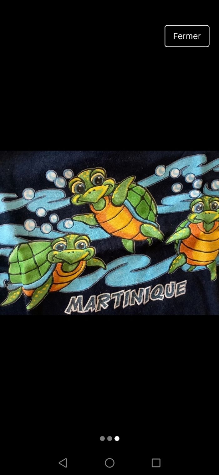 Lot comprenant 4 T-shirts manches courtes ( 2 Orchestra, 1 gemo et un venant de Martinique) Le tout en très bon état sauf celui de Martinique qui est très légèrement craquelé.