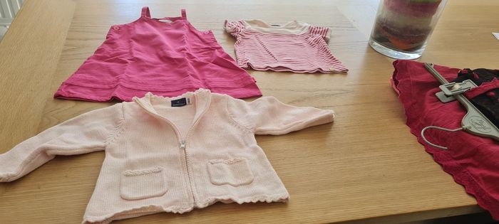 Robe rose son tee shirt ajorti et son gilet rose pâle en 6 mois de sergent major