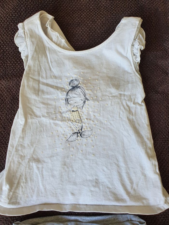 Pantalon jogging gris danseuse étoile Debardeur blanc petite sirene dos croisé Kiabi vertbaudet