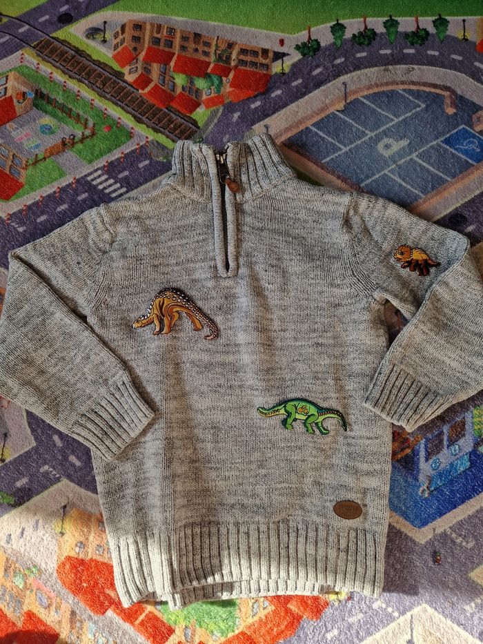 Pull 110 116cm ma mère a rajouter des dinosaures dessus. Correspond à du 6 ans Très bon état