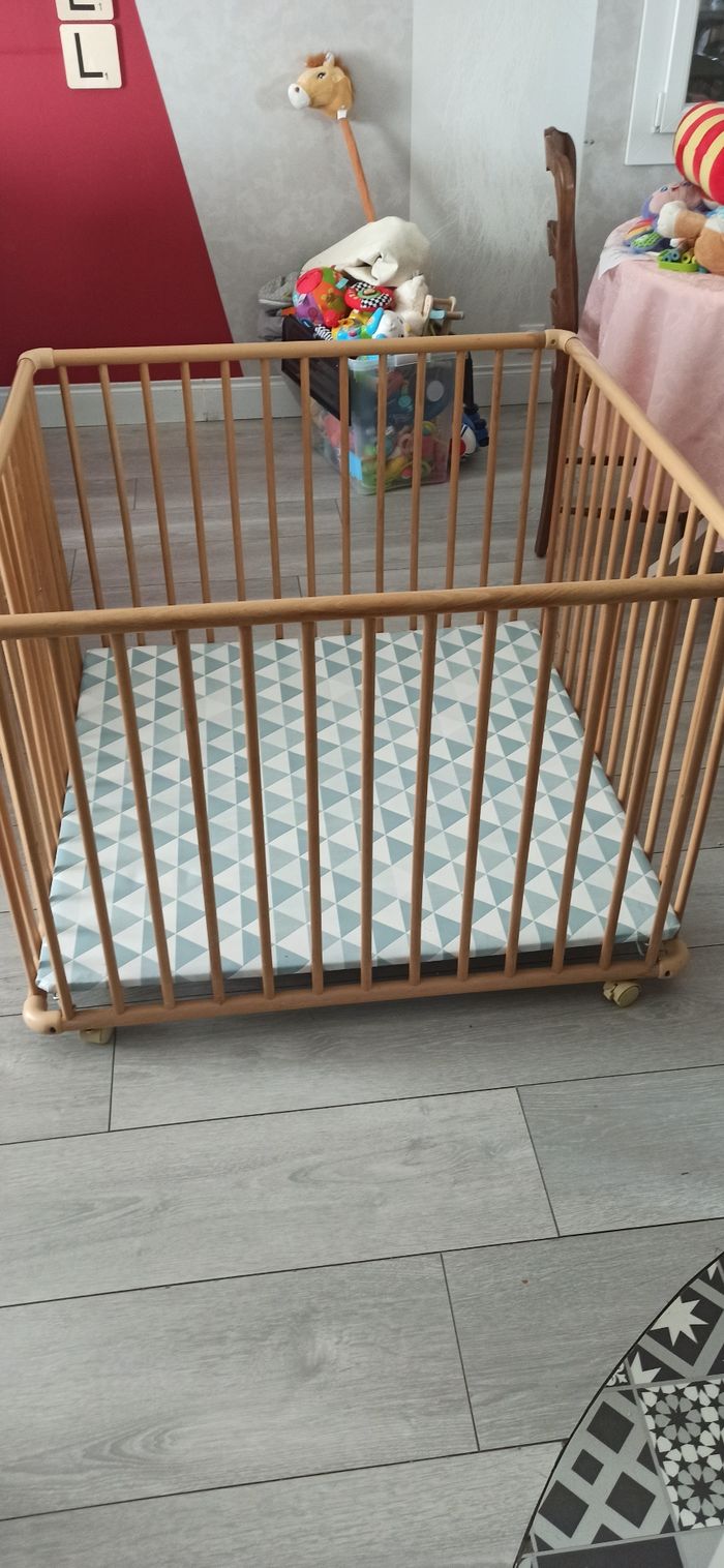 Parc Geuther en très bon état servi uniquement pour un enfant La doublure tissue est également de marque Geuther.