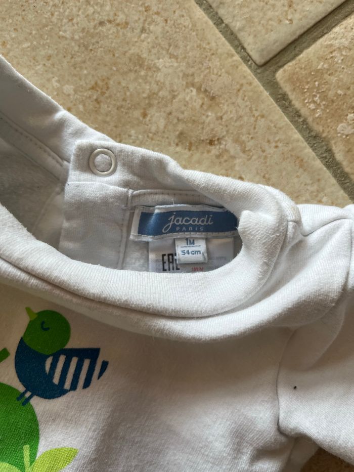 Pull Jacadi, taille un mois, coloris blanc, fermeture dans le dos En très bon état