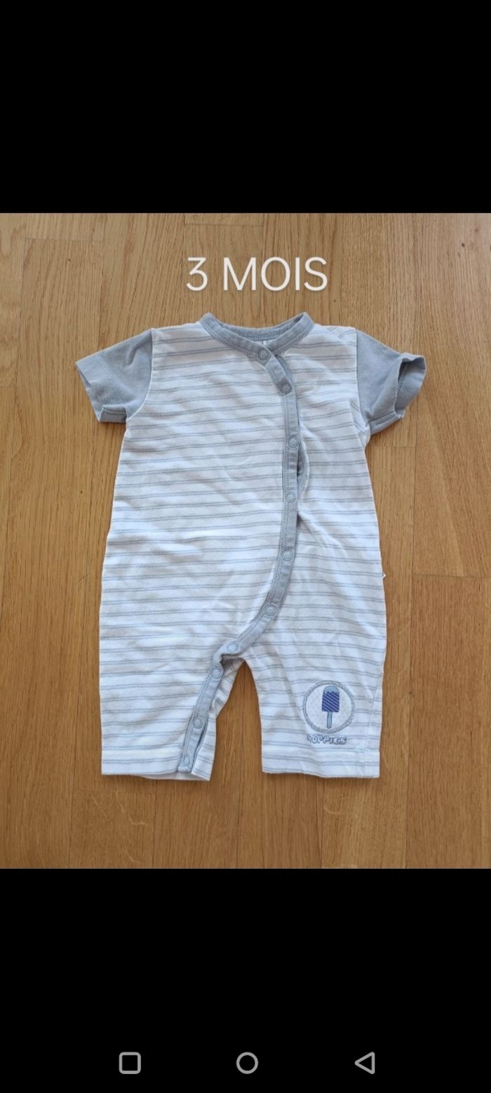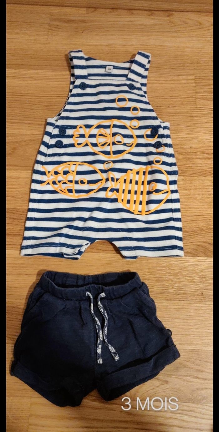 Un mot composé d'un col short, une salopette courte toute souple et d'un petit short. Taille 3 mois. Le tout a été très peu porté