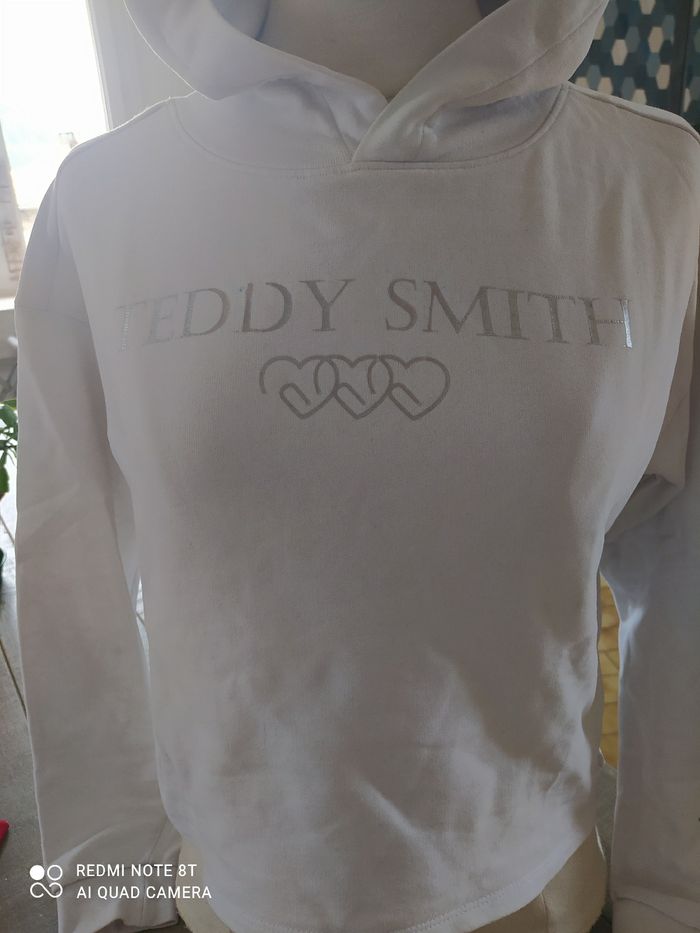 Pull blanc Teddy Smith légère petite tache entre les deux D de Teddy pull court 14 ans sinon très bon état