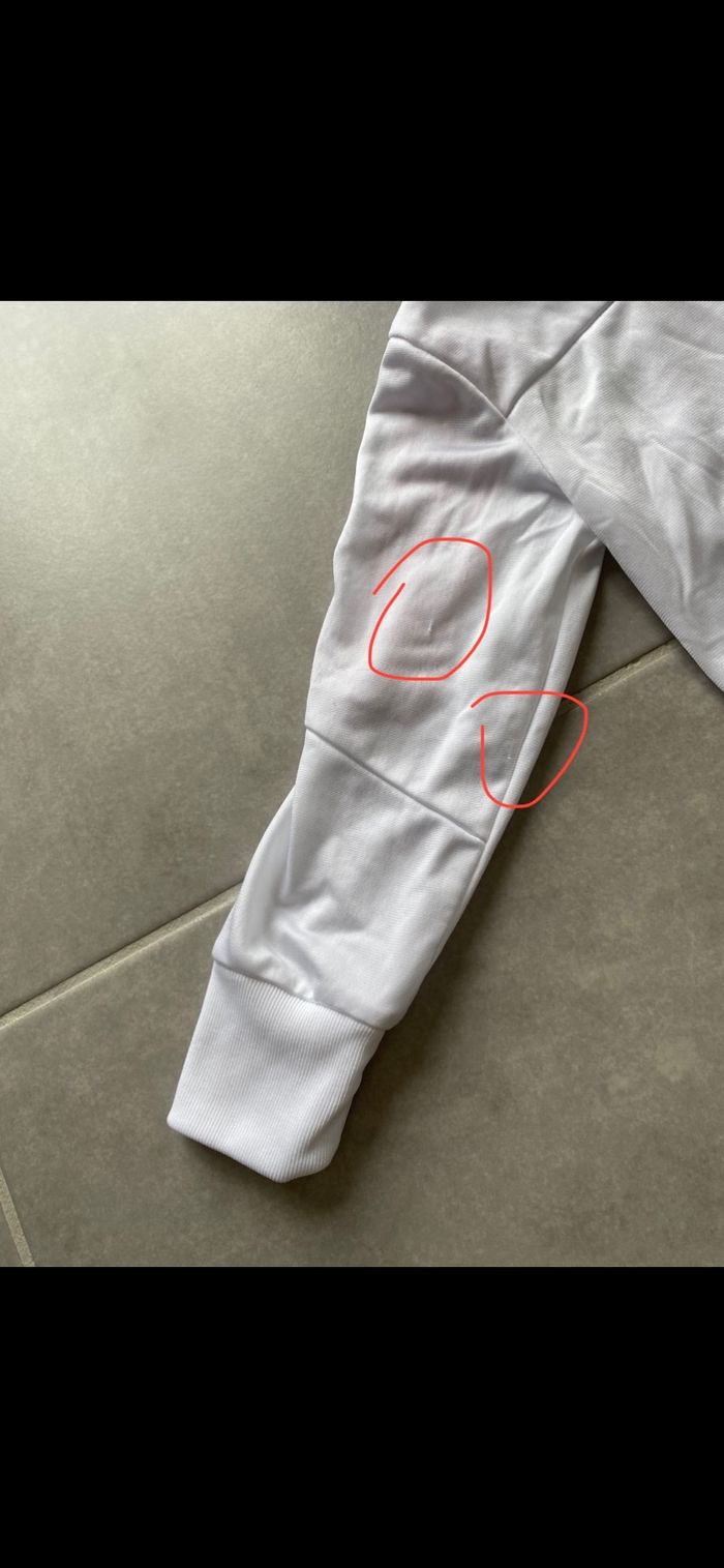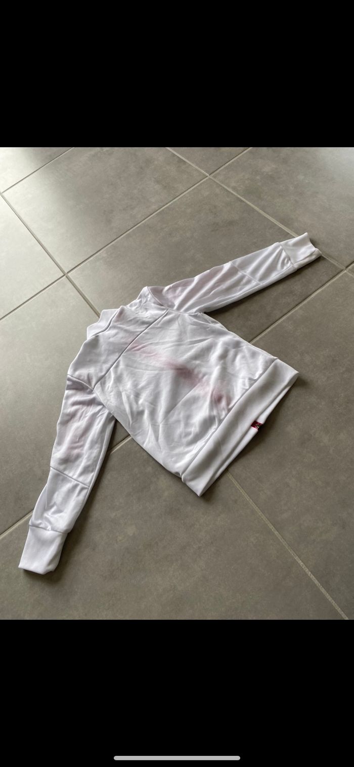 Peu porté, 2 petits accrocs sur la manche arrière gauche, ne se voit pas vraiment. Elle est tres belle, couleur blanche satine, et sa couleur framboise. N’hésitez pas à me suivre car encore beaucoup de jouets, des vêtements fille, des chaussures en cuir, des chaussons… (du 1 mois au 8 ans), des vêtements garçon (du 1 au 12 mois pour le moment ). Maison non-fumeurs et sans animaux même si je les adore. Il n'y aura pas de poils ou d'odeur désagréable. Vous recherchez quelques choses, demandez moi. Je réponds très rapidement. Bon shopping 😊.