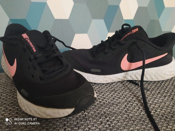 Basket Nike taille 35.5 pour fille noire avec le sigle rose
