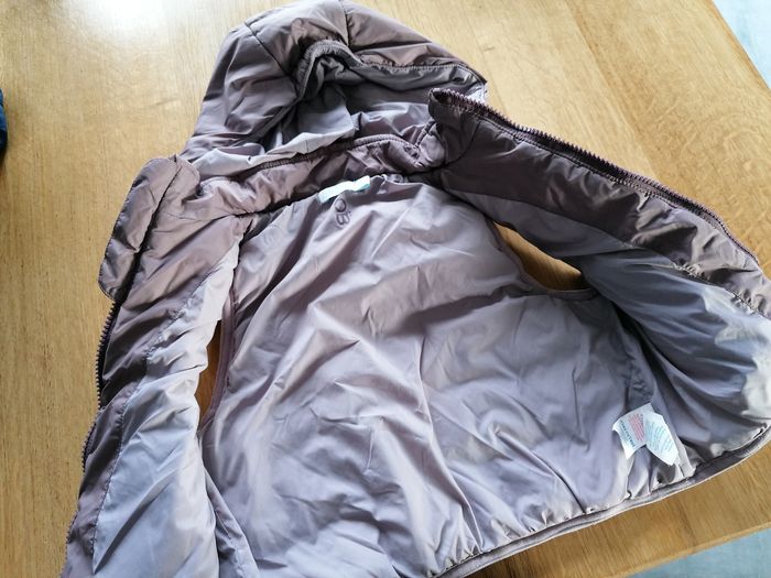 Doudoune sans manches avec capuches, assez épaisse 2 tons de violet clair Taille 18 mois marque obaibi