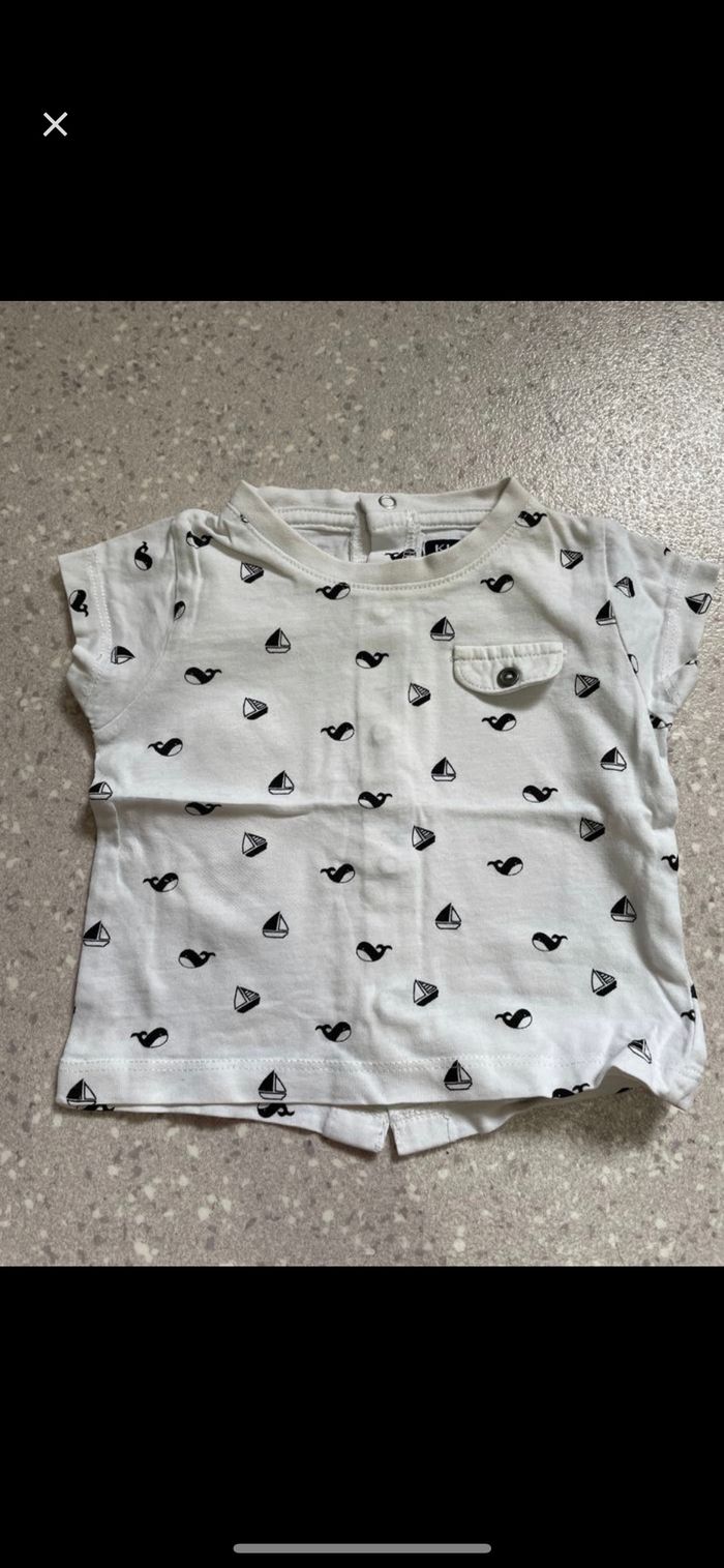Vends T-shirt blanc avec petites baleine taille 1 mois