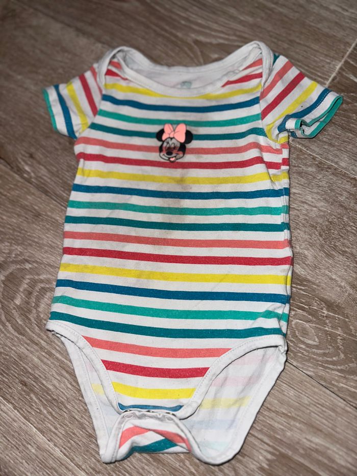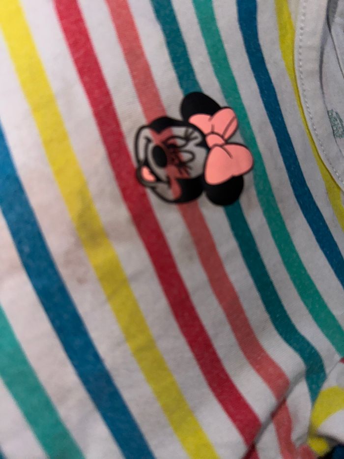 deux première photos les bodies son en très bonne état. Troisième photos une petite tache sur la tête du minnie mis à part sa le bodie est en bonne état.(je n'arrive pas à la faire partir..) Taille : 18mois