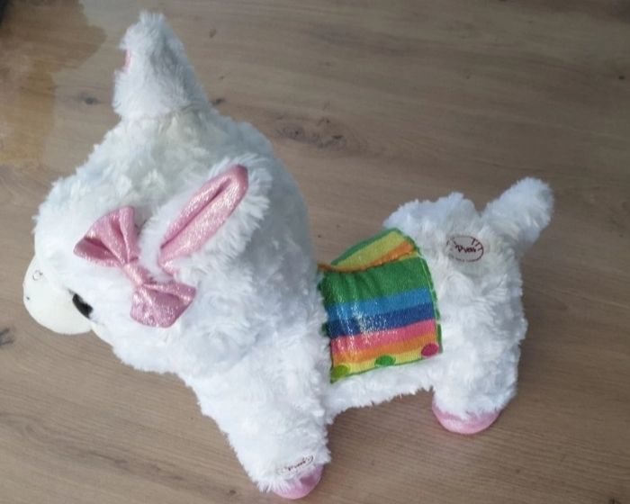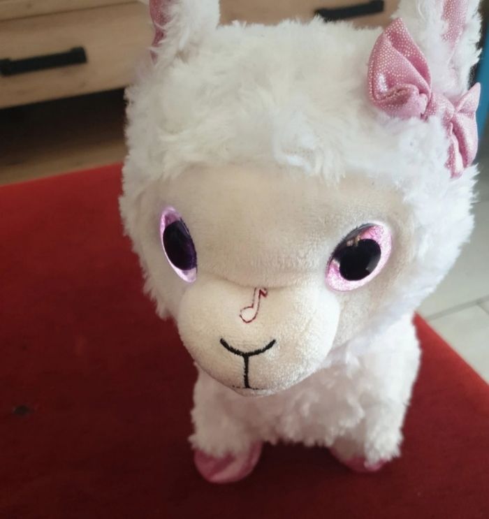 Plusieurs boutons à presser pour que ... - ses yeux s'allument - ses oreilles bougent - son corps se tremousse - la peluche avance