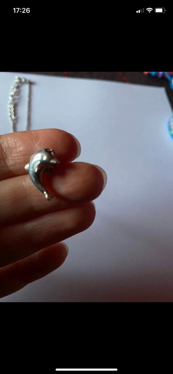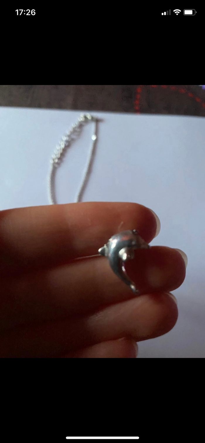 Collier chaîne avec pendentif dauphin. L’article est en très bon état.
