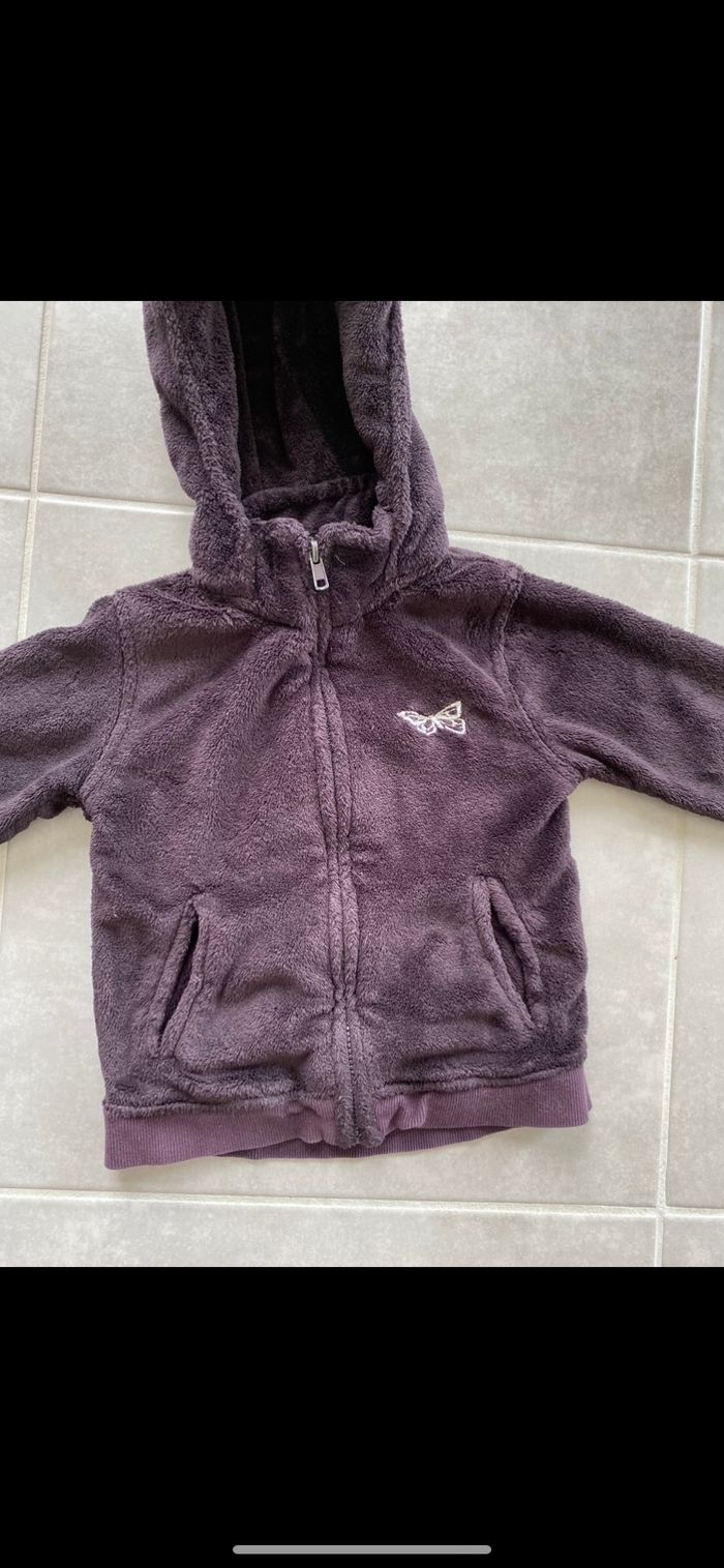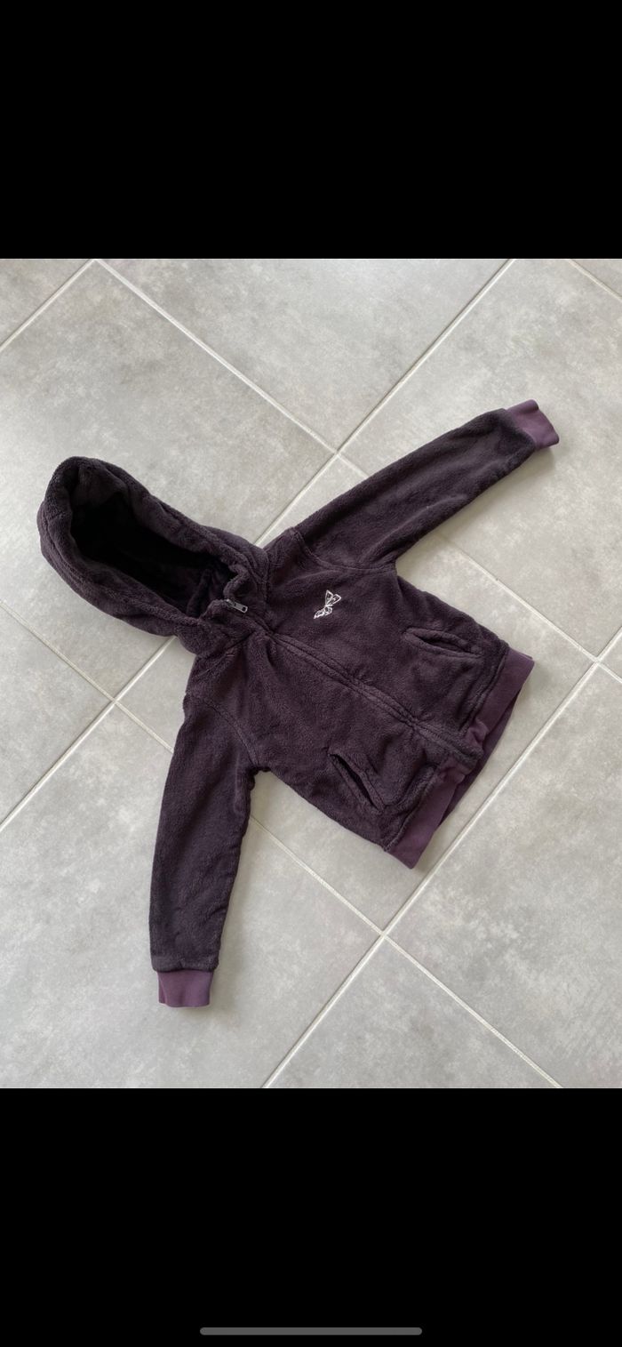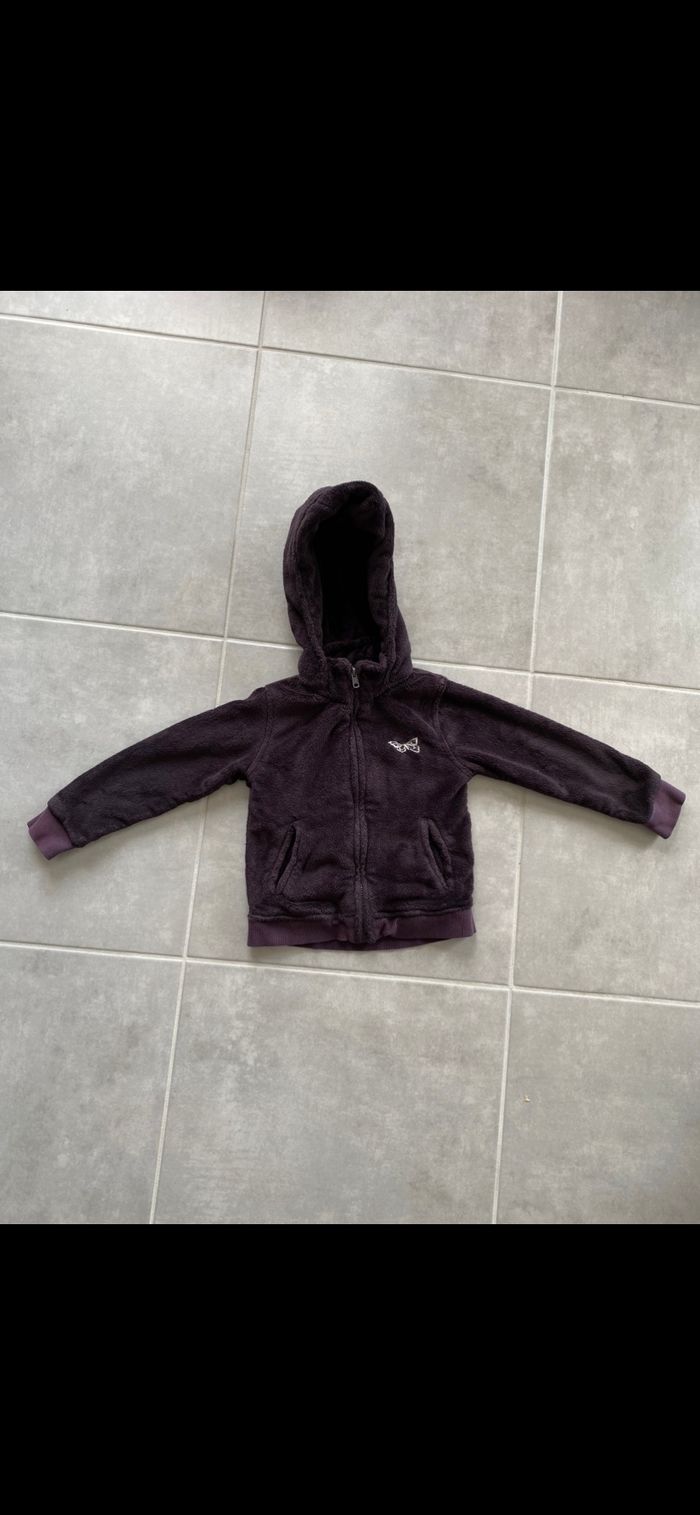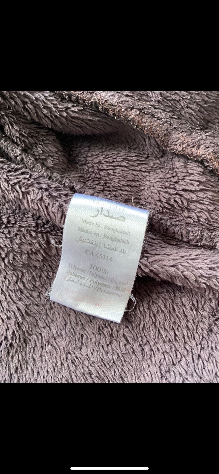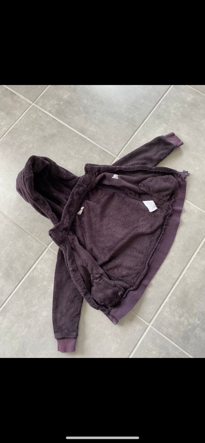Veste bien épaisse qui tient chaud. Veste extérieur ou gilet épais. Tout doux. Marron reflets violet. N’hésitez pas à me suivre car encore beaucoup de jouets, des vêtements fille, des chaussures en cuir, des chaussons… (du 1 mois au 8 ans), des vêtements garçon (du 1 au 12 mois pour le moment ). Maison non-fumeurs et sans animaux même si je les adore. Il n'y aura pas de poils ou d'odeur désagréable. Vous recherchez quelques choses, demandez moi. Je réponds très rapidement. Bon shopping 😊.