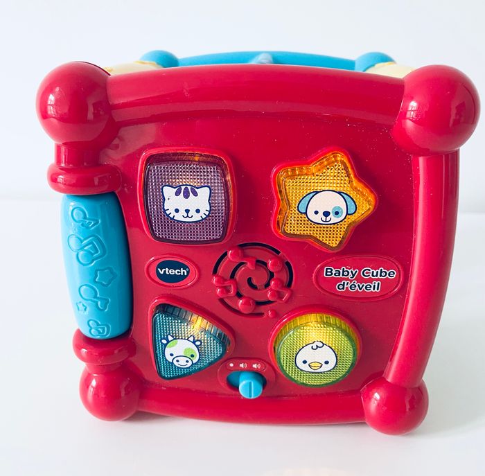 Baby Cube Vtech, état neuf car il a été acheté pour rester chez les grands parents donc très peu utilisé. Prix d’achat 40€.