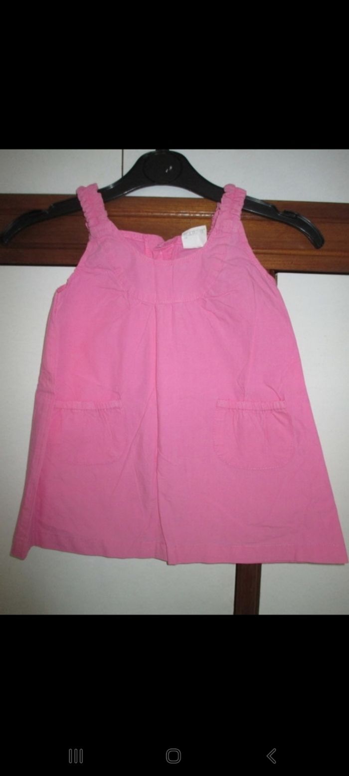 Robe été rose, 2 petites poches sur le devant. Fermeture boutonnée à l'arrière de la robe. Taille 24 mois