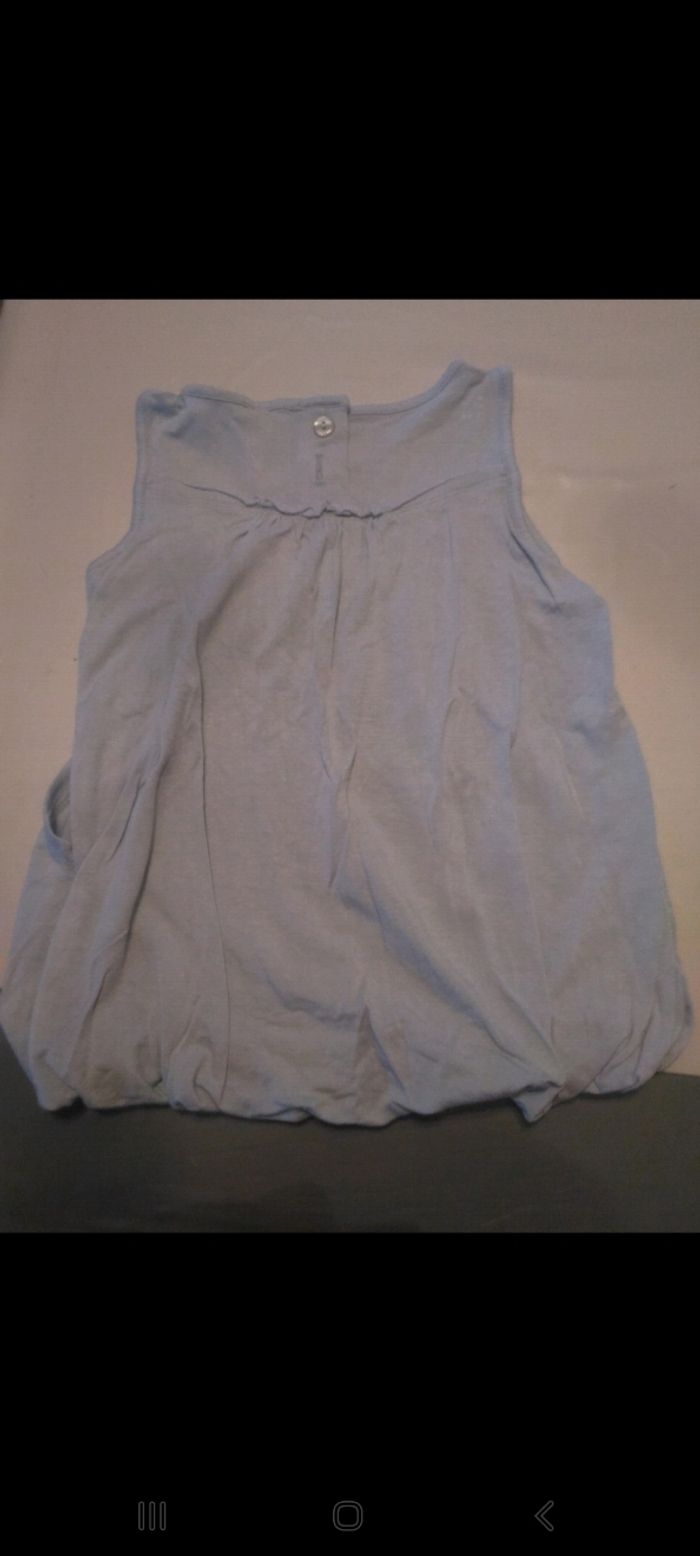 Robe bleu clair, 12 mois. Le bas de la robe est légèrement élastique. Très bon état