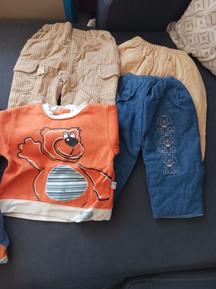Lot de vêtements garçon Taille 9 mois 3 pantalons dont 2 molletonnés 1 pull 3 pyjamas Bon état