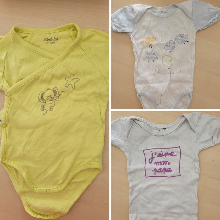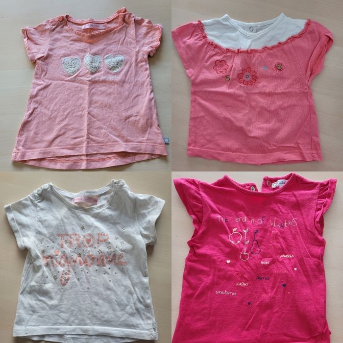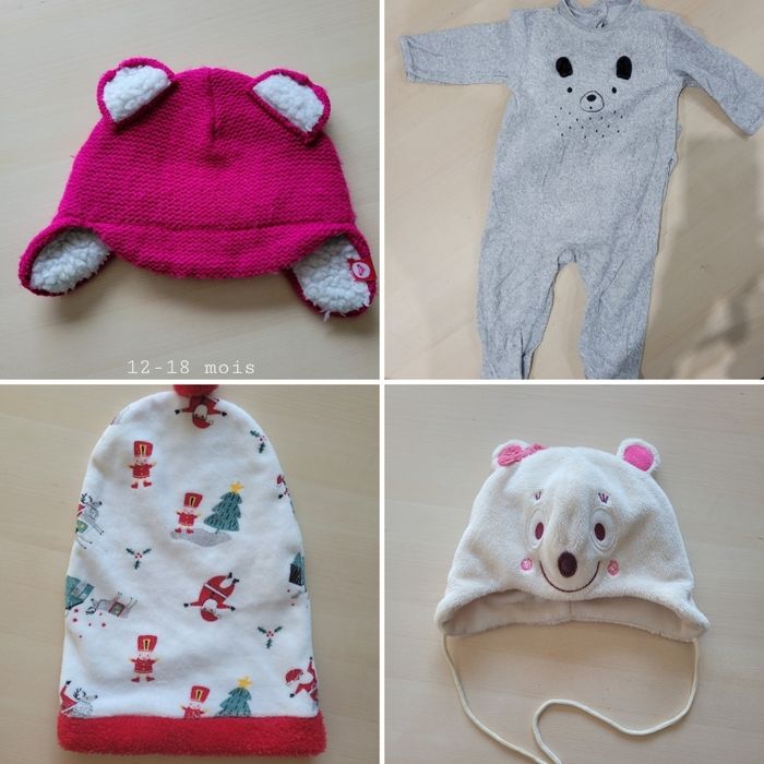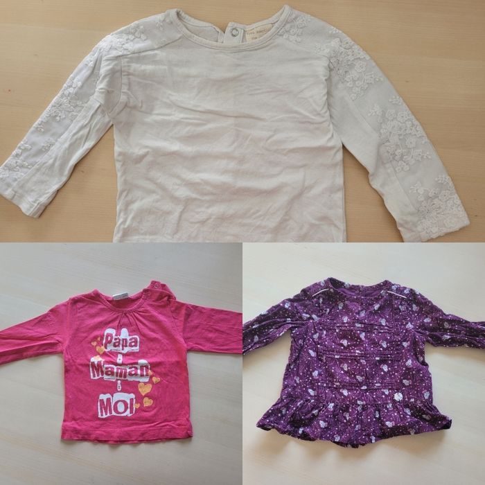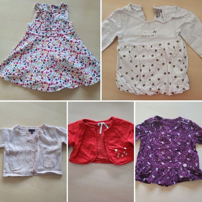 Lot de 12 mois comprenant : 3 tshirt manches longues 4 t-shirts manches courtes 3 robes 5 bodys 5 paires de collants 2 vestes 3 bonnets lot