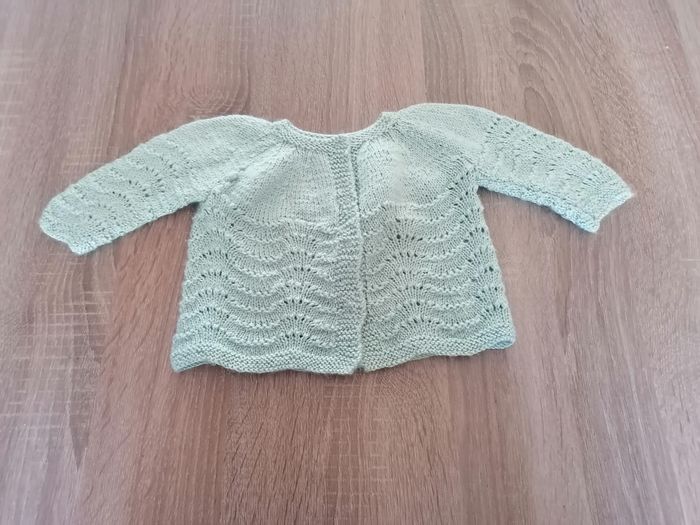 Veste 1 - 3 mois vert d'eau faite main par mes soins ☺️. En très bon état. Sans marque.
