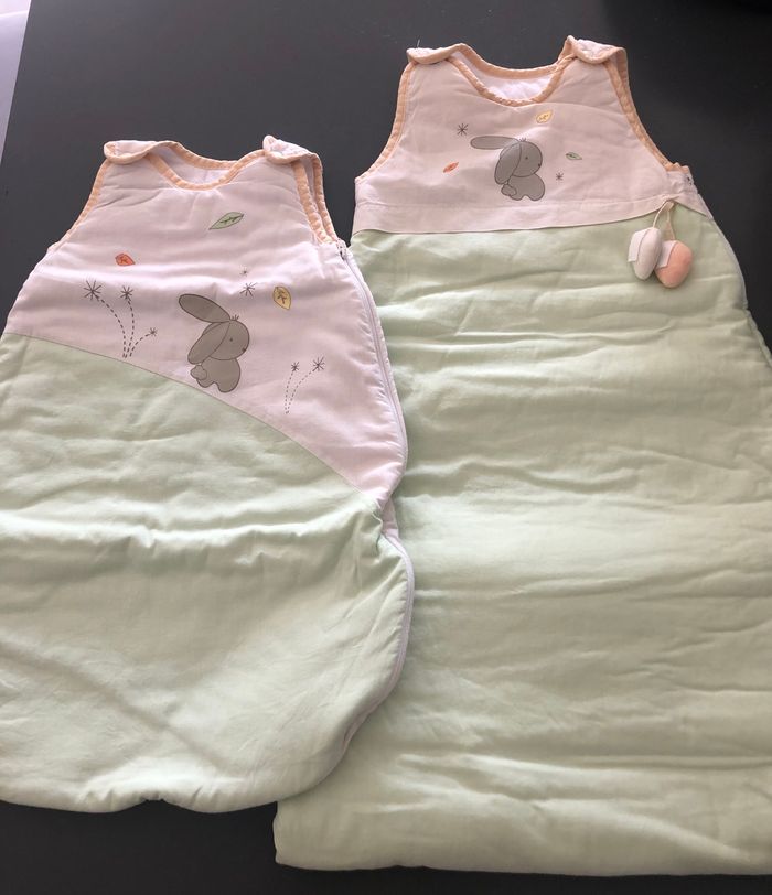 Ensemble comprenant une gigoteuse 0/6 mois , une gigoteuse 6/36 mois , un tour de lit et une couverture
