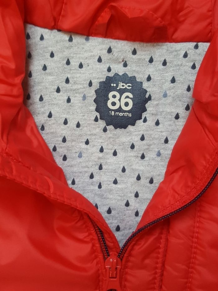 Petite veste rouge taille 86 de la marque JBC. Matelasseé à l'intérieur. En excellent état.