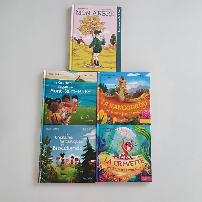 Neuf Juste le livre la crevette qui était musclée qui a un peu pris l'eau en bas La grande vague du Mont-Saint-Michel Les créatures fantastiques de Broceliande La kangourou qui n'avait pas de poche La crevette qui était très musclée Mon arbre