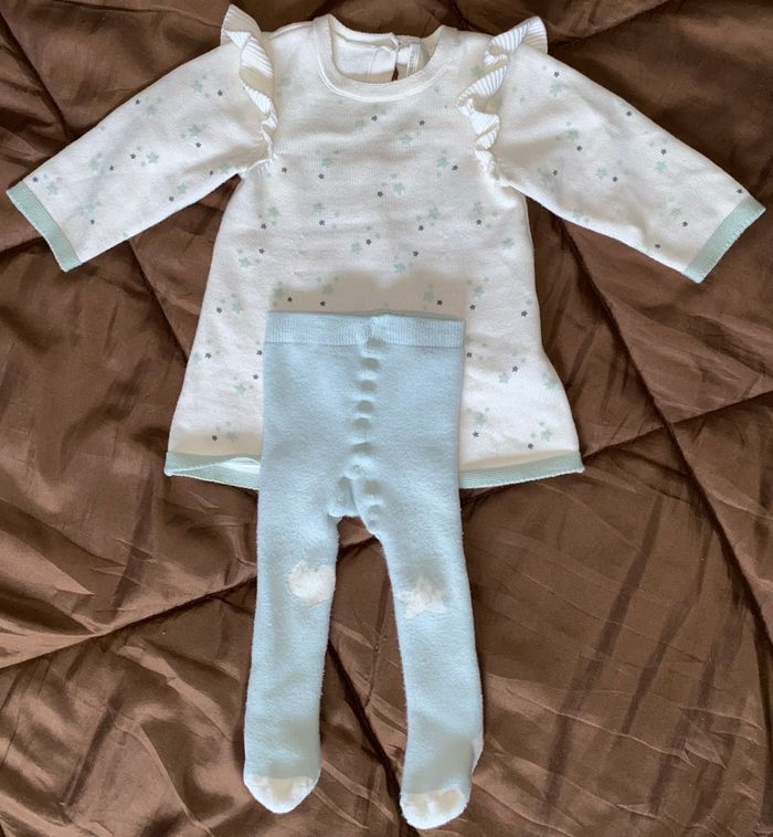 Ensemble robe et collant de chez ORCHESTRA. Peu portés, taille bien. Les tissus sont épais donc tenues qui convient plus pour les saisons hors été. Taille 6mois.