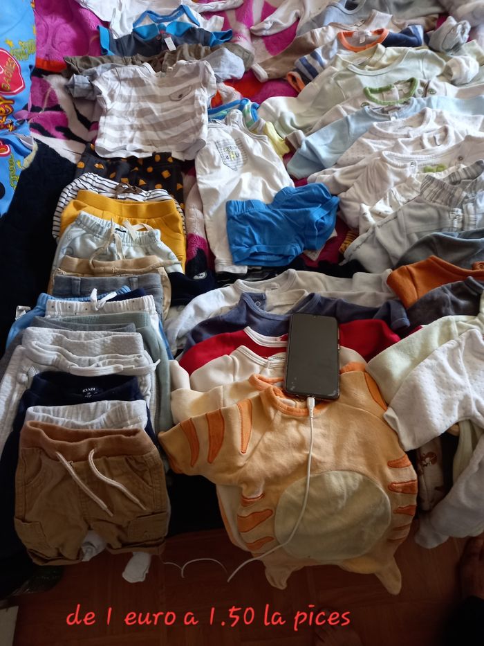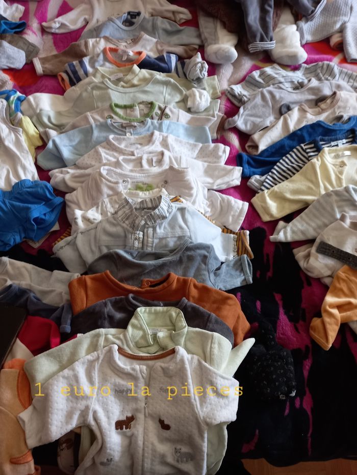 Bonjour vendre vettement bébé garçon de 1 mois il y ya un peu de tout avec des manteau il y ya plus 96 pièces soi part l unités 1 euro à 1.50