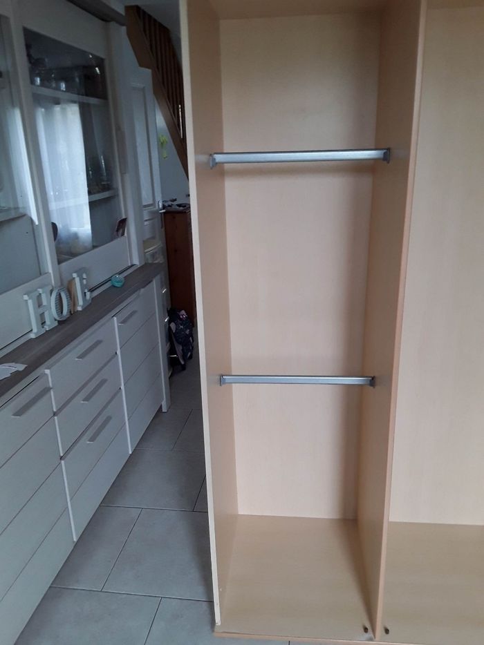 Vend armoire 1 côté double penderie et un côté avec 4 étagères H191cm × L 102cm x P 57 cm Lit à barreaux + matelas + 4 draps housses taille L 144cm x l 71cm x h 90 cm. 2 hauteurs de sommier possible ( à 16 cm et à 35 cm de haut) . Bon état