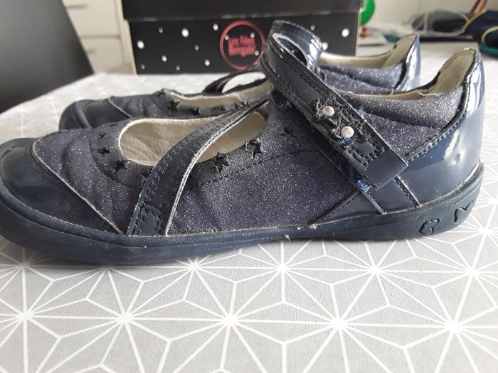 Ballerines bleues marine en bon état. Réglable grâce à des scratch. Confortable