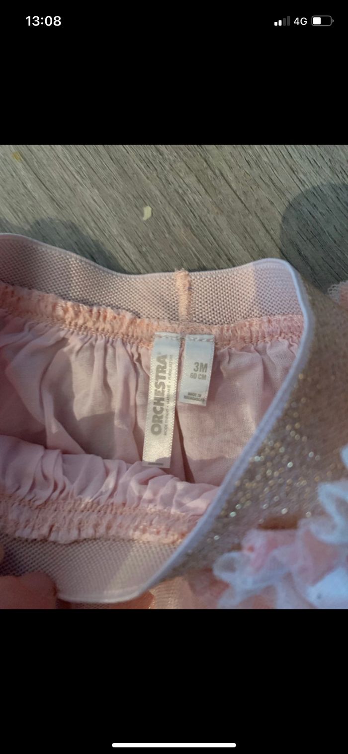 Jupe rose taille 3 mois . Jupe à paillettes. Et super état. Acheté à orchestra. Effets tutu ;)