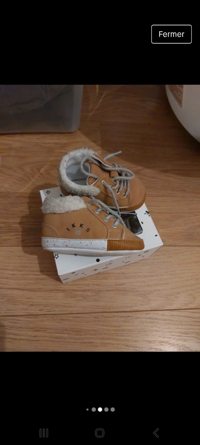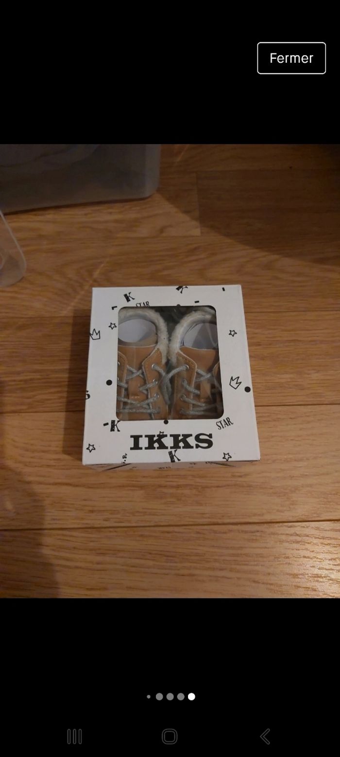Je vends une paire de chaussure bébé, pointure 19/20, marque IKKS, elles sont en très bon état. Vendu dans leur boîte d'origine.